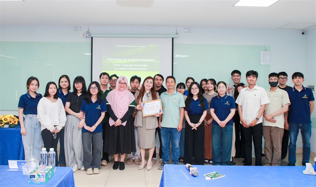 • Kết nối thực tiễn: Giải đáp trực tiếp các thắc mắc về lộ trình phát triển bản thân, giúp sinh viên tự tin hơn cho kỳ thực tập và công việc sắp tới. Đại diện Khoa Ngôn ngữ Anh gửi lời cảm ơn sâu sắc đến IELTS Thanh Lê đã mang đến những chia sẻ đầy tâm huyết, góp phần truyền cảm hứng và tiếp lửa cho thế hệ cử nhân tương lai của LHU. Khoa Ngôn ngữ Anh.