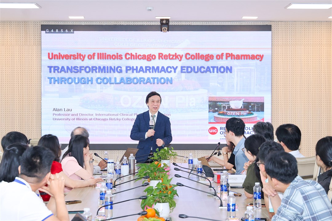 Tại chương trình, GS. Alan Lau đã giới thiệu về chương trình học tập hè tại Đại học Illinois Chicago (UIC), qua đó mở ra cơ hội để giảng viên và sinh viên Khoa Dược LHU tiếp cận môi trường học thuật quốc tế, nâng cao năng lực chuyên môn và mở rộng trải nghiệm thực tiễn trong lĩnh vực Dược lâm sàng.