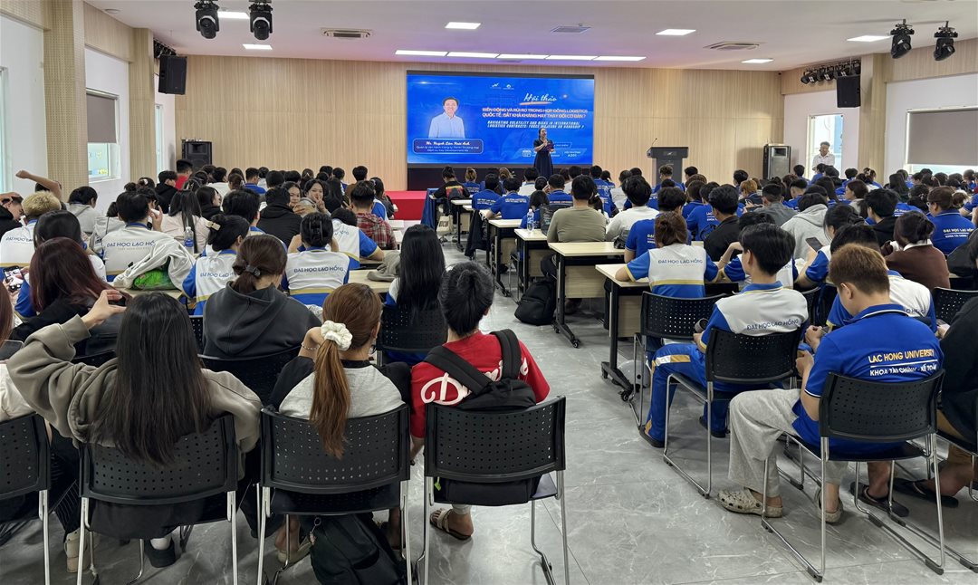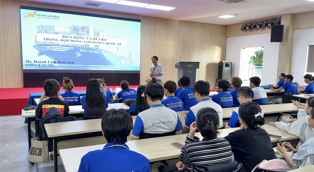 Nhằm tăng cường hoạt động học thuật gắn với thực tiễn doanh nghiệp và tạo cơ hội để sinh viên tiếp cận những vấn đề thực tế của ngành logistics, ngày 10/03/2026, Khoa Tài chính – Kế toán, Trường Đại học Lạc Hồng đã tổ chức thành công hội thảo chuyên đề “Biến động và rủi ro trong hợp đồng logistics quốc tế: Bất khả kháng hay thay đổi cơ bản?” tại Hội trường A301.