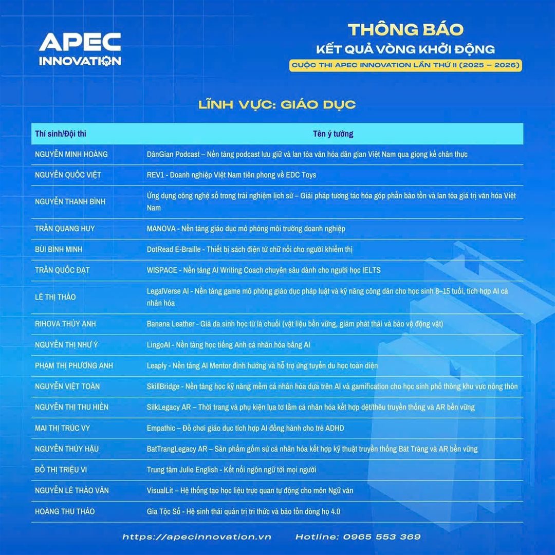 These projects demonstrate not only creative thinking but also the ability to apply IT to solve practical problems in education, social welfare, and digital economic development. Learn more about the APEC INNOVATION competition.